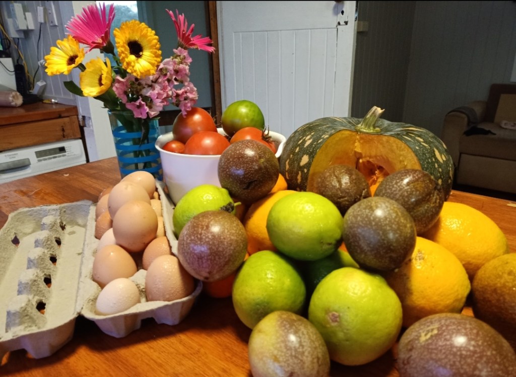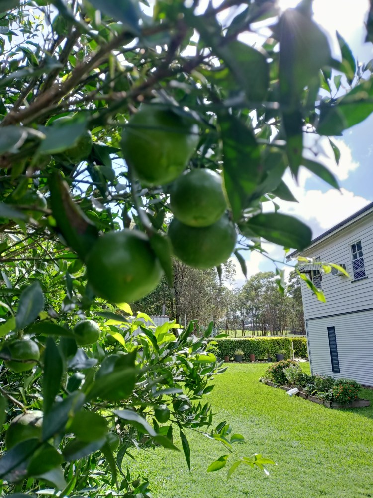 While they lived with us in their caravan, Herman and Sharon planted some fruit trees for us. A lime, a lemon, a mandarin and an orange tree. Picking mandarins off this tree is almost like picking lollies, only hanging on a branch. They are so beautifully sweet and juicy and the perfect snack without going upstairs.